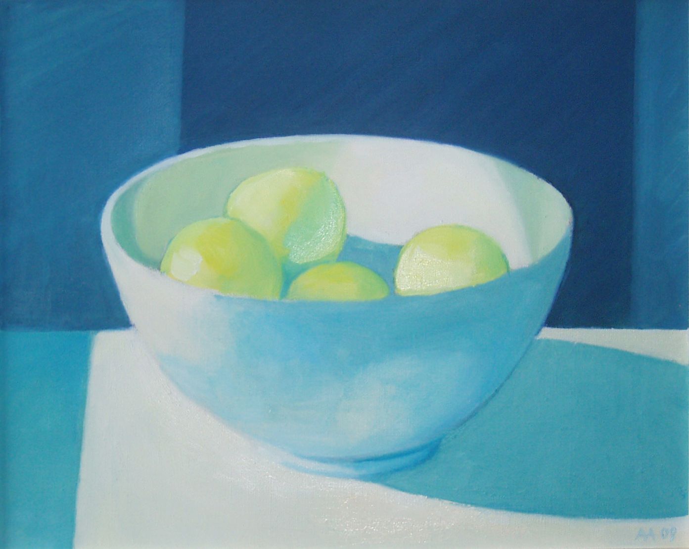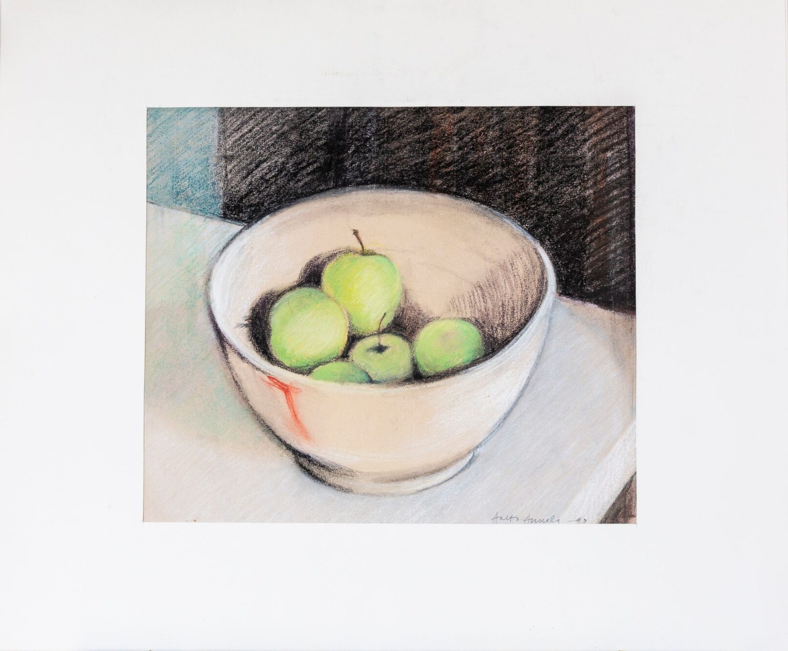 Vireät omenat kulhossa, 60 x 50 cm, pastel, 1997
